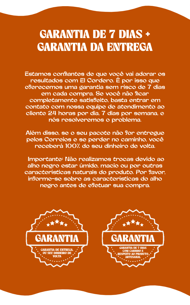 Pode acontecer de o alho negro ter um tom marrom escuro em vez de preto absoluto. Isso não significa defeito! É apenas uma variação natural do processo de fermentação e não interfere no sabor nem na qualidade.